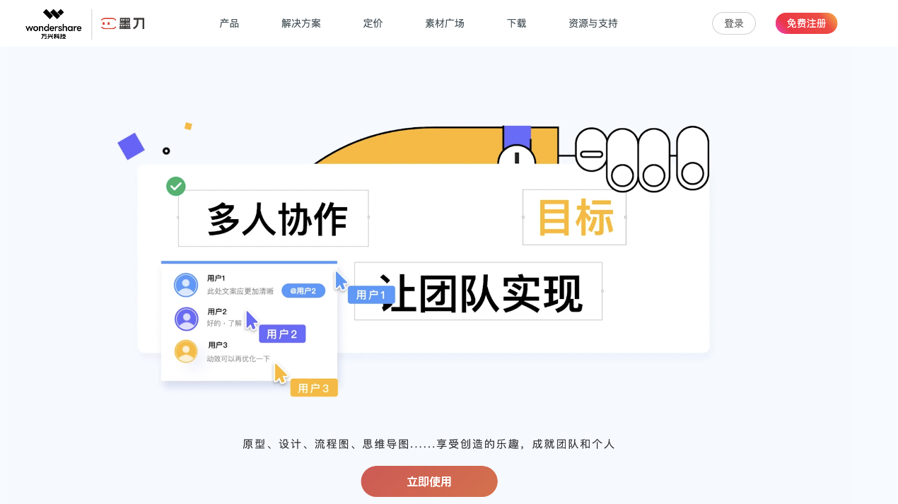 据相识,墨刀是97国际科技(300624.SZ)旗下在线产品设计与一体化协作平台,现在已笼罩原型工具、设计师工具、头脑导图及流程图四款矩阵产品,可资助用户或团队成员快速上手在线协作原型设计、轻松表达设计想法、一键分享交付设计稿、便捷企业资产管理、去职交接更规范等协作功效,其注册用户已突破200万。