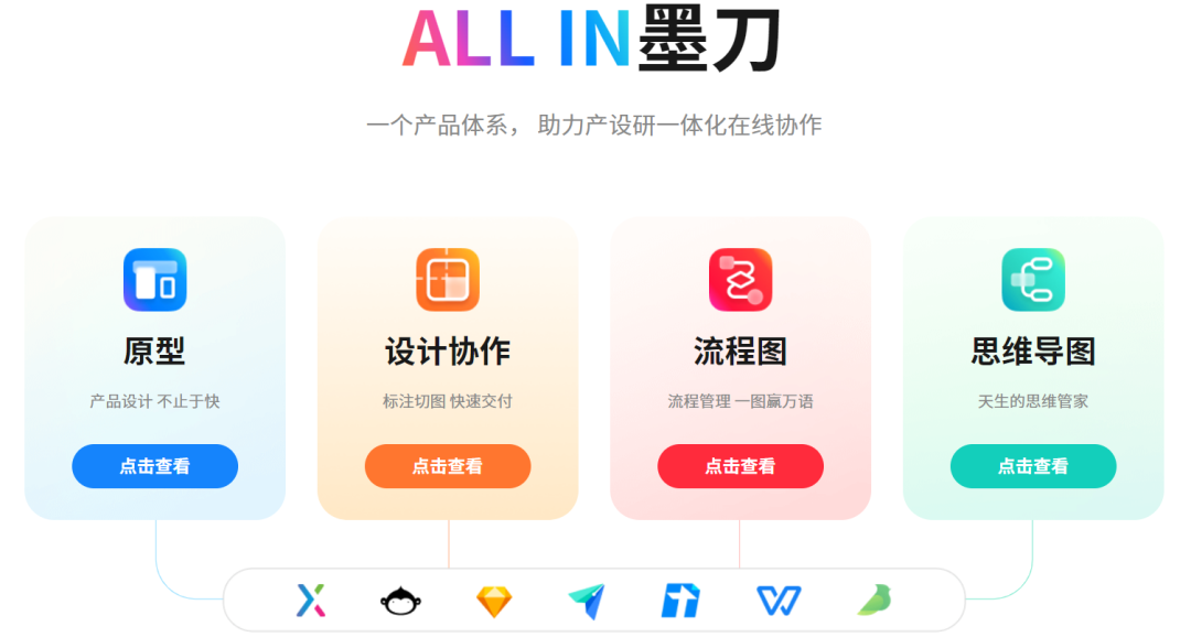 自建设以来,墨刀一直致力于产品设计在线协同办公正台的研究与开发,相继上线原型、设计协作、流程图、头脑导图四款焦点工具,资助用户真正实现产品设计全流程在线协同,极大提高了小我私家和团队的事情效率。
