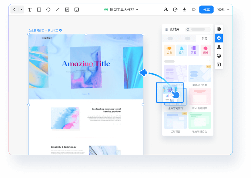 墨刀自建富厚的原型素材库,原型设计轻松上手。